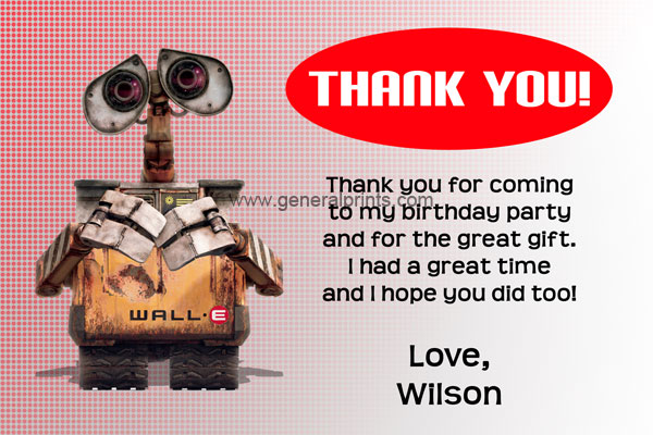 Wall-E invitations from the popular 2008 Disney Pixar animated film. The invitation has Wall E on the left side, and next to him your kids age will be displayed in a large number inside a circle. For the invitation wording, This design starts with the Wall-E logo and the wording follows that, with prominence given to the name to make it stand out from everything else. You can order this style in either red or blue. All the wording can be personalized when placing the order and we will try our best to make everything fit perfectly for you.